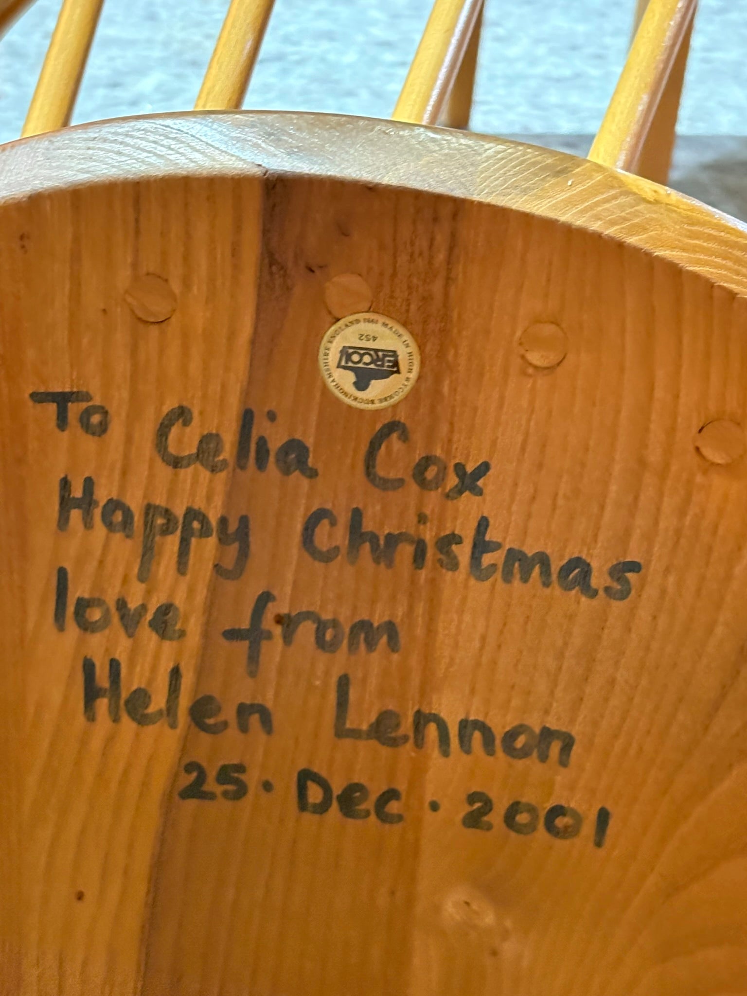 ERCOL 牛角搖椅(Cowhorn Rocking Chair),又被稱為「壁爐椅」(Fireplace Chair),是 Ercol 於 1960 年代推出產品。此款椅子以椅背兩側宛如牛角的弧形線條聞名,兼具雕塑感與舒適性。它不同於標準四腳牛角椅,而是特別設計成搖椅形式,座高刻意降低,讓人能自在地坐於壁爐旁,或在閱讀與休憩時享受放鬆氛圍。