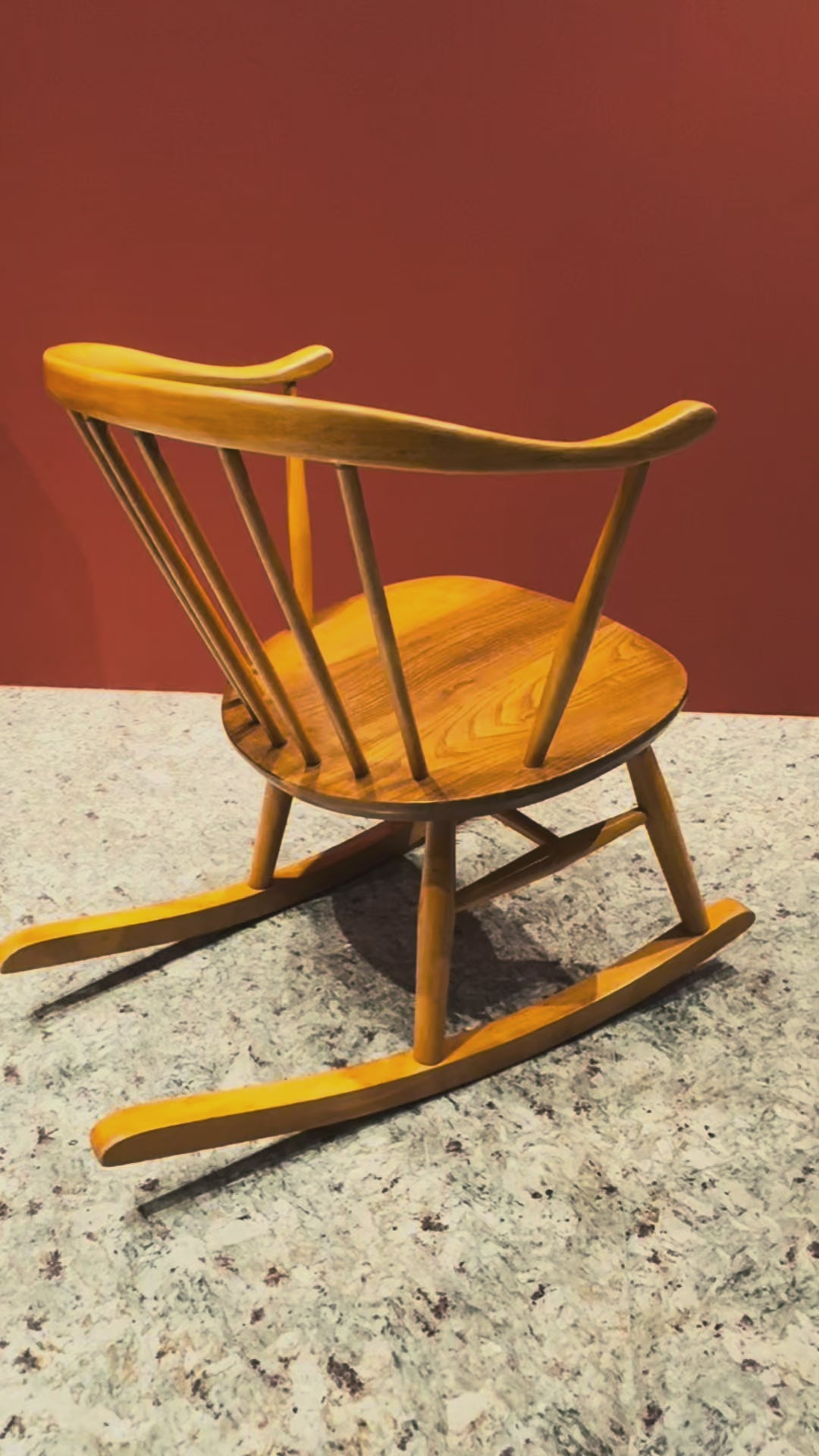 ERCOL 牛角搖椅(Cowhorn Rocking Chair),又被稱為「壁爐椅」(Fireplace Chair)。此款椅子以椅背兩側宛如牛角的弧形線條聞名,兼具雕塑感與舒適性。它不同於標準四腳牛角椅,而是特別設計成搖椅形式,座高刻意降低,讓人能自在地坐於壁爐旁,或在閱讀與休憩時享受放鬆氛圍。
