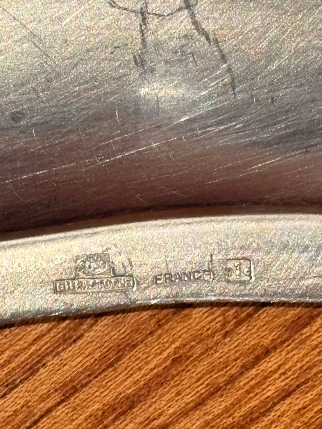 盤底留有 Christofle 品牌壓印,作為製作來源的識別標誌,亦為銀器收藏中的重要參考細節。